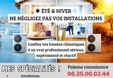Micro entreprise spécialisée en installations et entretiens climatiques, ainsi que petits projets de plomberie dans le Var.